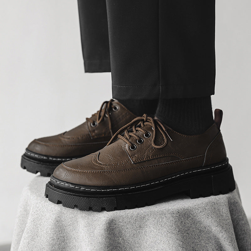 Obermaterial: Kunstleder (PU) mit sichtbarer Struktur und Kontrastnaht Form: Runde Kappe, Derby-Schnürung, 5 Ösen Komfort: EVA-Einlegesohle, weiches Textilfutter, dezenter HöheneffektSohle: Spritzgegossene Profilsohle (Kunststoff), rutschfest und abriebfestStil & Einsatz: Business-casual, Alltag, ÜbergangswetterFarben: Schwarz, BraunGrößen: 39–44Gewicht: ca. 1,0 kg pro Paar (größenabhängig)Saison/Modell: 2025, SKU FA01